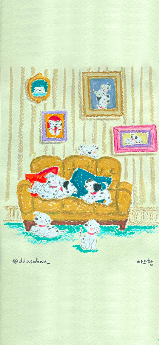 I started drawing these pictures during a low point in my life. I felt life was a bit hard, sometimes cruel and even unjust. So I began to draw things that cheered myself up. When I drew, all the bad feelings melted away, so it became a weekly routine for me and I began posting my drawings on my instagram account @ddasuhan_ (which in korean means “a warm feeling”). I began to notice that other people felt happy and warm seeing these drawings, so I continued drawing and posting. Often people would ask me if they could buy the artwork. For a long time I refused to sell any of my artwork until I went to Brisbane for a working holiday and the guest house manager there was an art collector. Being there to see him respond to the art I was creating made me realise that others like him would also enjoy collecting and displaying my artworks. So I decided to open this online gallery, for those who want to hang a @ddasuhan_ artwork on one of their walls in their home or office. I also thought that giving a @ddasuhan_ artwork to someone could make them happy, so I wanted to see my artwork become meaningful gifts for people they cherish. That they could change people’s life for he happier when one person gives the @ddasuhan_ to another person, forming and strengthing happy relationships. That’s why @ddasuhan_ are also about enriching relationships.