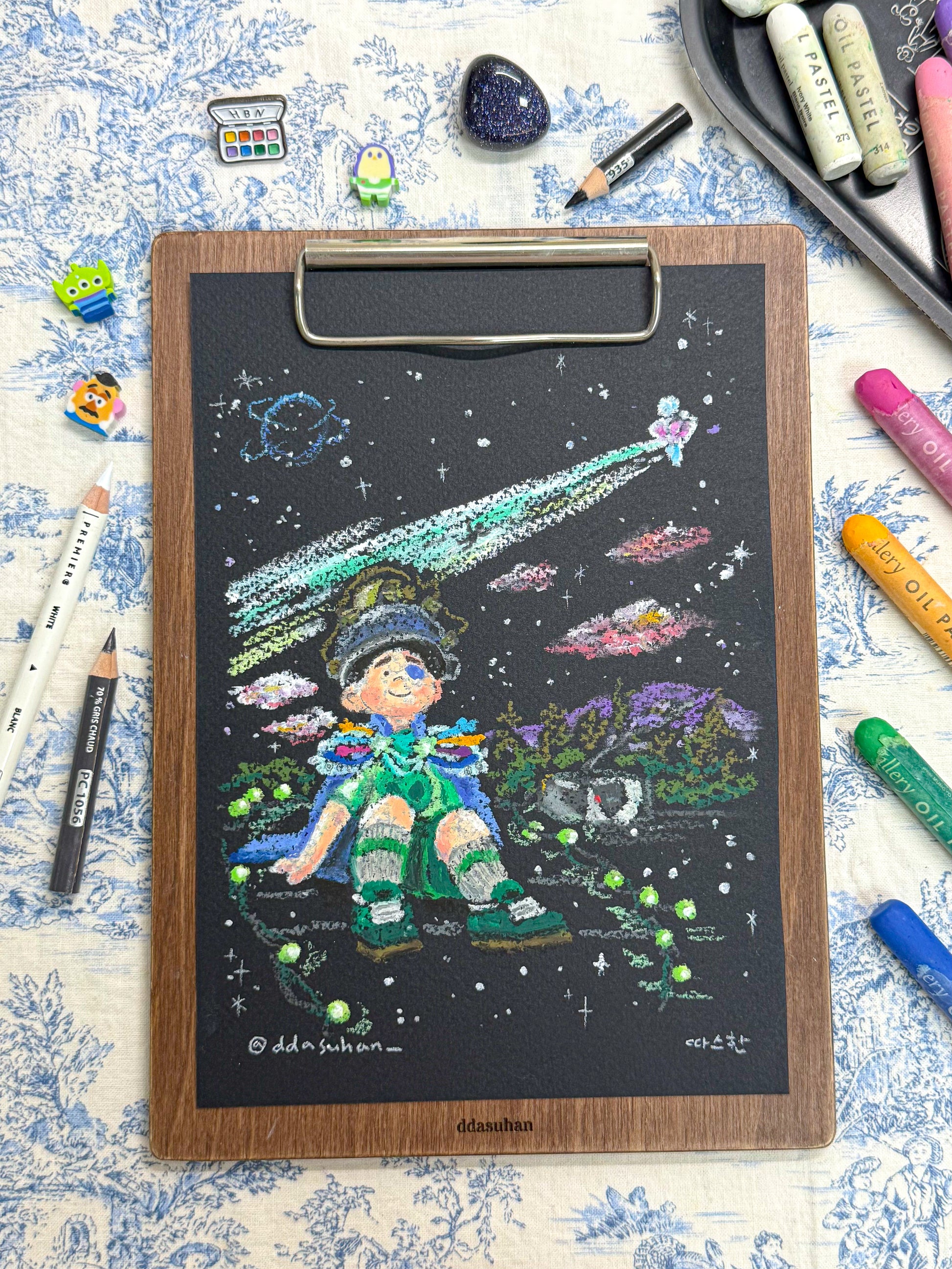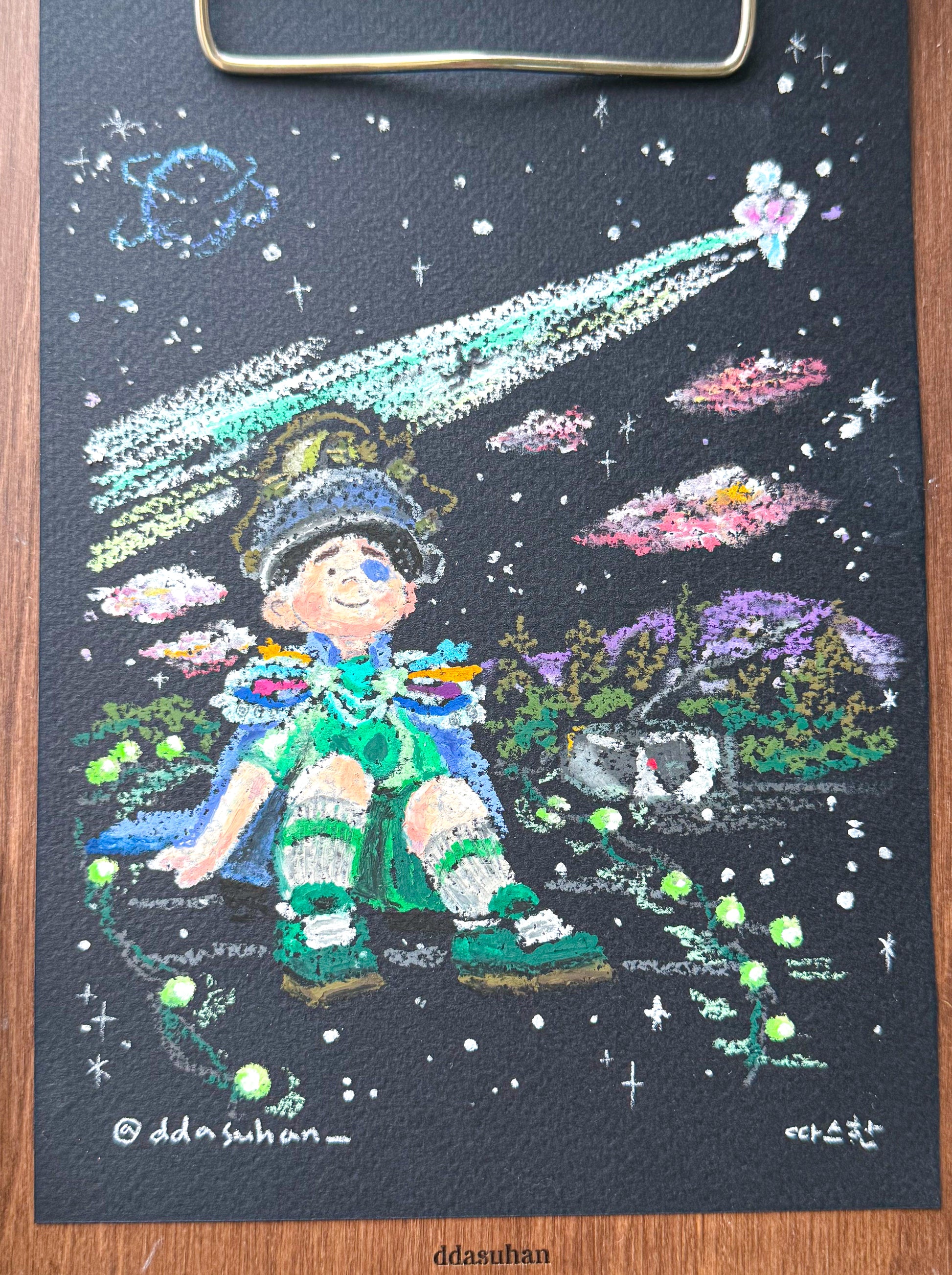 If you purchase this original oil pastel drawing, the related Instagram posts on @ddasuhan_ will be dedicated to you, giving you public written provenance as owner of the artwork. You can also receive a signed certificate of authenticity with a personalised note from Jisu Sang (@ddasuhan_) accompanying the picture to protect you from any future forgeries of the artwork.