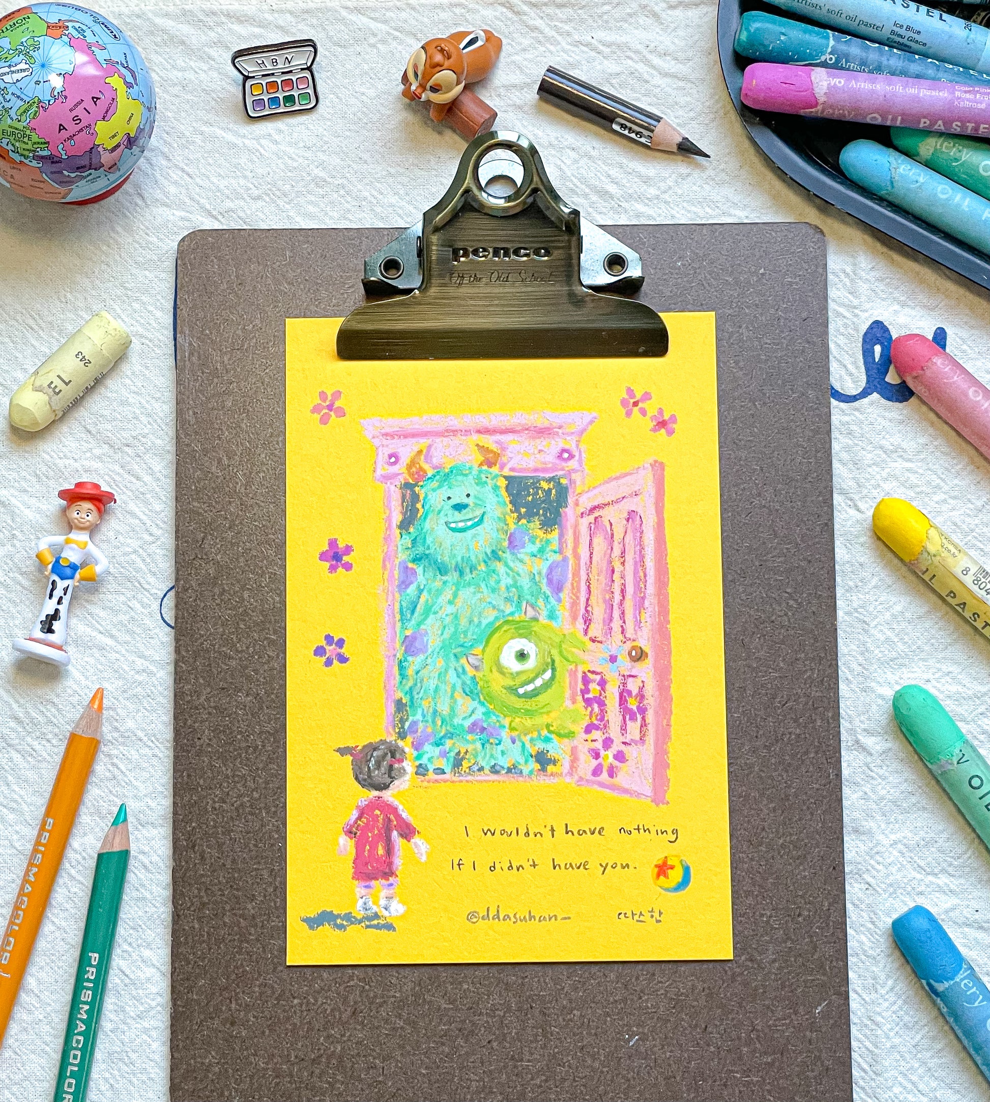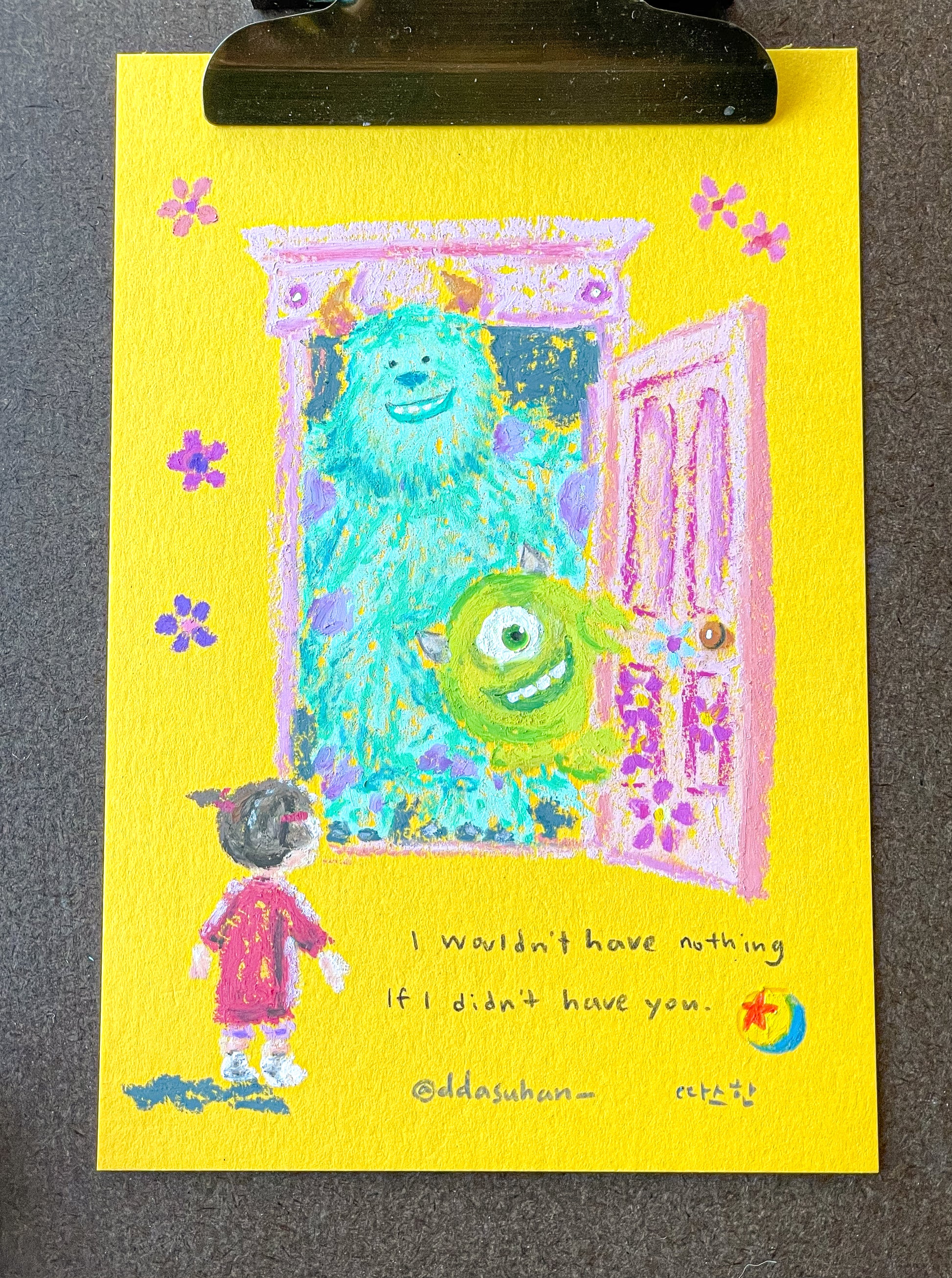 If you purchase this original oil pastel drawing, the related Instagram posts on @ddasuhan_ will be dedicated to you, giving you public written provenance as owner of the artwork. You can also receive a signed certificate of authenticity with a personalised note from Jisu Sang (@ddasuhan_) accompanying the picture to protect you from any future forgeries of the artwork.