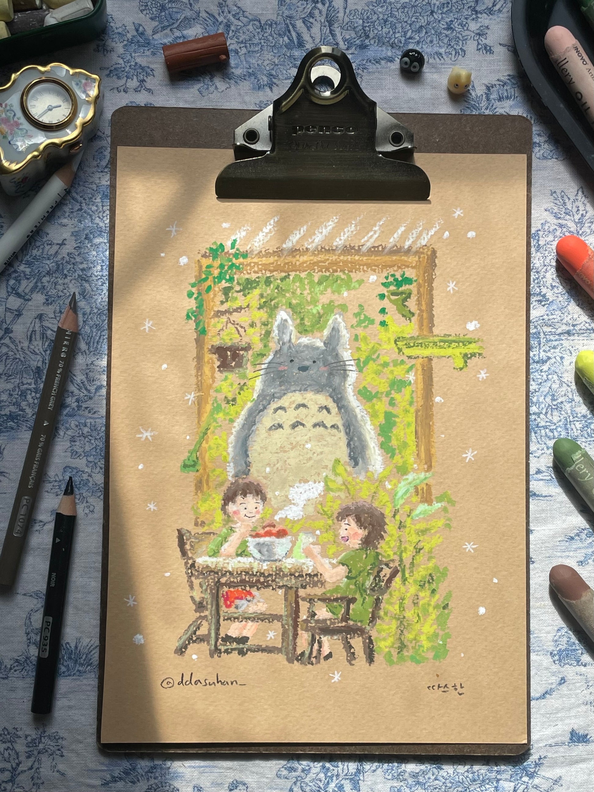 I drew this picture because Totoro is cute and I really like this picture. I feel it’s very relaxing and pure escapism from daily work.