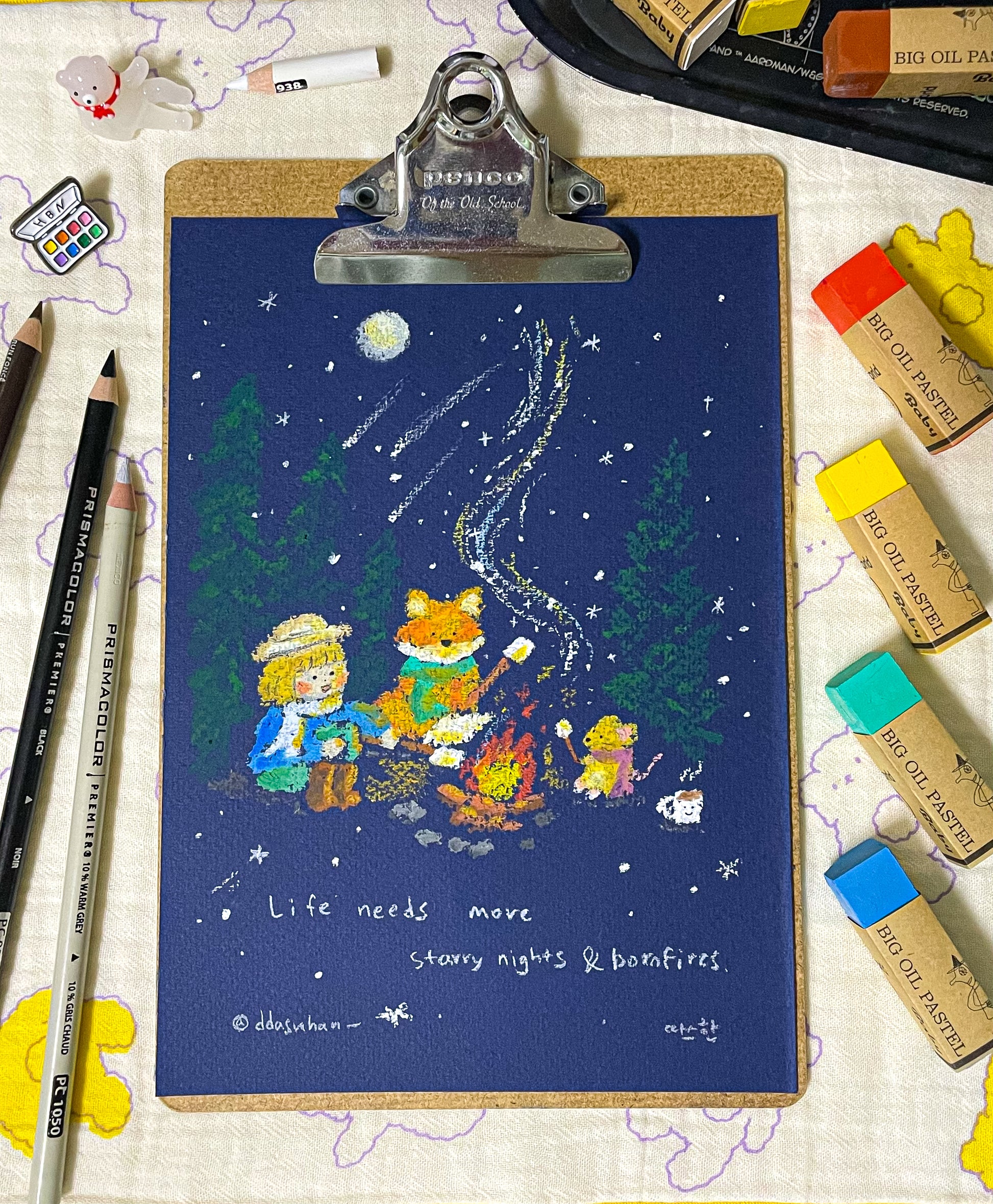 If you purchase this original oil pastel drawing, the related Instagram posts on @ddasuhan_ will be dedicated to you, giving you public written provenance as owner of the artwork. You can also receive a signed certificate of authenticity with a personalised note from Jisu Sang (@ddasuhan_) accompanying the picture to protect you from any future forgeries of the artwork.